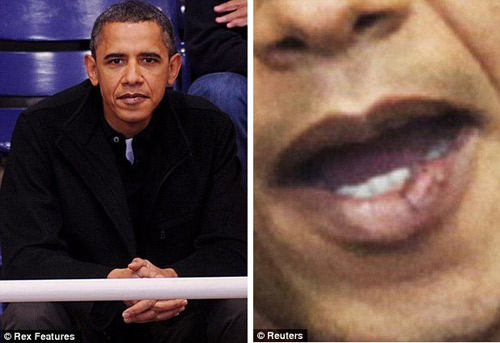 美國總統(tǒng)奧巴馬在11月26日與友人打籃球時,意外遭到肘擊受傷,之后醫(yī)生在他的嘴唇上縫了12針。英國媒體于28日曝光了奧巴馬縫針后在公共場合出沒時的照片,并稱這一傷口可能會留下難以消除的疤痕。