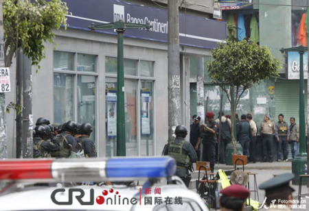 秘魯警方于當(dāng)?shù)貢r(shí)間3日晚在首都利馬采取突擊行動(dòng),擊斃一名搶劫銀行的持槍歹徒,成功解救了被扣押在銀行內(nèi)的33名人質(zhì)。
