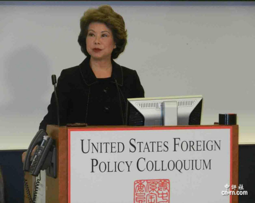 趙小蘭的這番話是在“美中關(guān)系全國委員會(huì)”的外交政策學(xué)術(shù)論壇上做主旨演講時(shí)所說。該論壇已連續(xù)十年舉辦,專門面向中國在美留學(xué)生。趙小蘭表示,雖然自己未曾與彭麗媛會(huì)面,但觀賞過彭麗媛的歌唱視頻。趙小蘭對中國留學(xué)生們說:“你們的‘第一夫人’會(huì)很受美國人歡迎的。”學(xué)生們以愉快笑聲回應(yīng)。