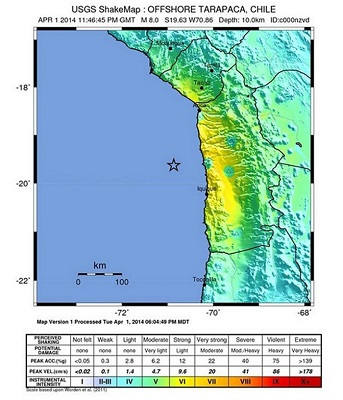 當(dāng)?shù)貢r(shí)間4月1日晚8點(diǎn)49分,里氏8.2級(jí)地震襲擊了智利北部附近海域,強(qiáng)震隨即引發(fā)2.5米高海嘯。據(jù)加拿大環(huán)球新聞網(wǎng)站4月2日?qǐng)?bào)道,該地區(qū)在過(guò)去1個(gè)月內(nèi)已經(jīng)發(fā)生了近100次2.5級(jí)以上地震,這次強(qiáng)震僅是其中之一。
