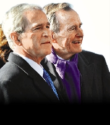 被要求評價兒子任內(nèi)表現(xiàn)時,老布什形容兒子通過“911”這個史無前例的考驗,希望人們明白當時處境。他在訪問中尊稱兒子為“總統(tǒng)”,布什則稱父親為“41”(第41任總統(tǒng))或較親切的“爸爸”。