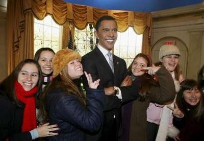 中新網(wǎng)1月16日電 據(jù)《星島日?qǐng)?bào)》報(bào)道,美國(guó)候任總統(tǒng)奧巴馬的蠟像在全球多間的蠟像館亮相,吸引大批游客,一睹美國(guó)首位黑人總統(tǒng)的風(fēng)采。