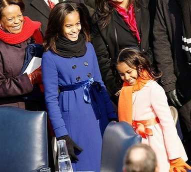 中新網(wǎng)1月22日電 美國總統(tǒng)奧巴馬的長女馬莉婭(10歲)和次女薩莎(7歲)20日在奧巴馬就職儀式上的著裝獲得一致好評,被稱“很可愛”,人氣不亞于總統(tǒng)夫人米歇爾的禮服。據(jù)日本共同社報道,就職儀式后有關服裝廠商接到蜂擁而至的問詢,以致于網(wǎng)頁爆滿陷入癱瘓。