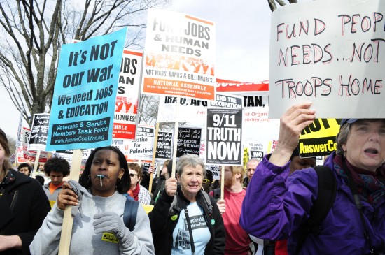 游行組織方、“立即行動結(jié)束戰(zhàn)爭和種族主義”反戰(zhàn)聯(lián)盟發(fā)言人斯隆說,此次游行的目的是敦促奧巴馬政府立即從伊拉克和阿富汗撤軍,反對美國霸權(quán)政策。她認(rèn)為,如果美國總統(tǒng)奧巴馬要擴(kuò)大在阿富汗的戰(zhàn)事,將重蹈在伊拉克的覆轍。