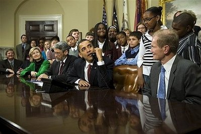 奧巴馬與學(xué)生對(duì)航天員在空間站的生活及工作情況都感到非常有興趣。奧巴馬與航天員聊天大約半小時(shí),詢問在無重狀態(tài)下如何影響他們睡覺,是否習(xí)慣飲食等。