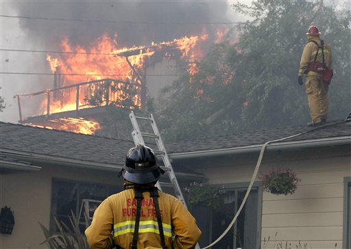 大量消防車(chē)和數(shù)架消防直升機(jī)在火區(qū)滅火,但火勢(shì)難以控制。消防官員告訴當(dāng)?shù)仉娨暸_(tái),房屋一間接著一間被大火吞噬,到傍晚時(shí),至少有三十棟房屋被毀。據(jù)報(bào)道,至少兩人被燒傷,另有兩名消防員受傷。