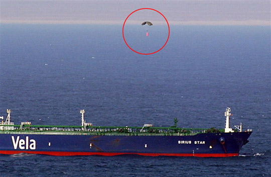 2008年11月15日,索馬里海盜劫持了沙特超大油輪“天狼星號”,并扣押23名不同國籍的船員作為人質(zhì),勒索的贖金達到350萬美元。無奈之下,“天狼星號”用直升飛機于2009年1月9日傘降贖金,這一幕也被美國海軍拍了下來。據(jù)一些媒體報道,后來海盜因為分贓不均發(fā)生爭執(zhí),造成乘坐的小船傾覆,多人死亡。為了一探事情的究竟,CNN聯(lián)系了一名生還的海盜。