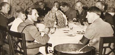 這份文件還記錄稱,更加令人感到驚奇的是,在進餐時的談話中,希特勒的語氣并不像他在公共場合演講時那樣略帶沙啞的“歇斯底里”,而是用“標(biāo)準(zhǔn)的男中音”。對于女性,希特勒總會表現(xiàn)出一種極其自然的殷勤與真誠。他那帶有“古老奧地利”口音的殷勤和文雅,給他的言行舉止增添了一種不可抗拒的魅力。他對在他手下工作的女性總是十分尊重,而且沒有任何偏見。當(dāng)然他也要求手下的工作人員專心致志并且徹底犧牲個人的自由。希特勒在追求女性方面是一個極其糟糕的心理學(xué)家,因為他本身就是一個完美的喜劇演員,很難分辨哪是本性哪是偽裝。所有接近他的人,尤其是女人總是把自己最美的一面展示出來,而希特勒對她們表現(xiàn)出來的殷勤和虛偽總是信以為真。他明顯偏愛他的一名女秘書,這位秘書非常懂得滿足他的虛榮心。她在場的時候,希特勒總是會露出愉快的笑容,