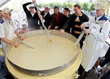 中新網(wǎng)10月27日電 綜合報(bào)道,日前在瑞士西部古城莫爾日,眾多志愿者和廚師聚集在一起,試圖制作出世界最大的干酪,創(chuàng)下世界紀(jì)錄。