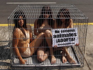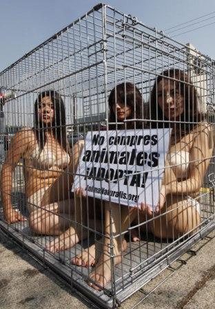 中新網(wǎng)1月4日電 綜合報(bào)道,1月3日,墨西哥城3名動物權(quán)益組織成員坐在一個籠子中,對買賣寵物的行為表示抗議。他們希望以這種形式喚起人們的注意,呼吁人們不要販賣寵物。