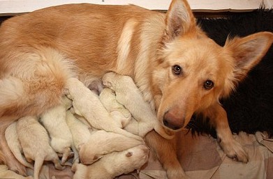 中新網(wǎng)2月4日電 據(jù)英國媒體報道,英國拉納克郡的消防員安德魯•路易斯日前在幫他三歲的德國牧羊犬萊拉接生產(chǎn)下7只狗崽后,兩小時后回家又驚奇地發(fā)現(xiàn),萊拉肚子里還有6只狗崽。
