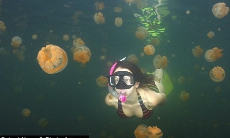 據英國媒體報道,來自美國波士頓的的計算機科學家弗拉德日前在世界上絕無僅有的無毒水母湖拍攝了自己女兒和水母嬉戲的圖片。他形容在帕勞水母湖里游泳如同置身于果凍中,“我們越往湖中游,就有越多的水母將我們包圍,看著云集的水母,真是令人愉快!