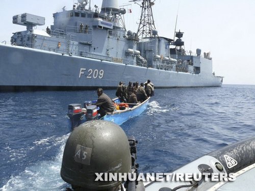 德國(guó)軍方3日在首都柏林說(shuō),德海軍當(dāng)天在索馬里附近海域的亞丁灣擊退一次海盜襲擊并抓獲9名海盜。