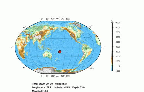據(jù)中國地震臺網(wǎng)測定,北京時間9月30日01時48分,薩摩亞群島地區(qū)(南緯15.5,西經(jīng)172.2) 發(fā)生8.0級地震,震源深度約33公里。