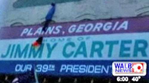 據(jù)香港大公網(wǎng)報道,那是一個巨大的黑色假人,外貌酷似奧巴馬,頸部纏著一條繩,被人吊在平原鎮(zhèn)大街一幢建筑物外面。那座建筑物的外墻掛了一幅巨型橫額,印上“佐治亞州平原鎮(zhèn),我們的第三十九任總統(tǒng)卡特的故鄉(xiāng)”的字句。