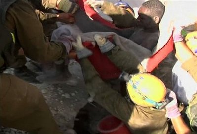 中新網(wǎng)1月23日電 綜合外電報道,海地再次上演生命奇跡,一名老年女性與一名年輕男性,在海地地震廢墟中被埋長達10天后,于22日被成功救出。