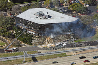 事發(fā)于美國時(shí)間早上約9時(shí)56分,53歲的軟件工程師斯塔克駕駛一架Piper Cherokee PA-28小型飛機(jī),首先在低空盤旋,然后直沖7層高的國內(nèi)稅收署辦公大樓的2樓,隨即引起猛烈爆炸,并燃起大火,冒出大量濃煙。事發(fā)時(shí)大樓內(nèi)約有190人,各人驚慌逃生,一些人在情急下從窗口跳下。