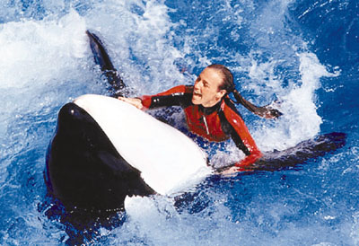 這起殺人鯨襲擊訓(xùn)練員的事件發(fā)生在美國(guó)佛羅里達(dá)州奧蘭多的海洋世界。在現(xiàn)場(chǎng)游客駭然的注視之下,名叫提里庫(kù)姆的殺人鯨突然躍出水面,將訓(xùn)練員布蘭喬拖入水中。這已經(jīng)是提里庫(kù)姆第三次涉及人類死亡的事故。