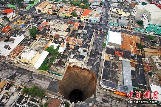 中新網(wǎng)6月2日電 據(jù)香港《文匯報(bào)》報(bào)道,熱帶風(fēng)暴阿加莎橫掃中美洲,造成至少150人死亡。受到連場暴雨影響,危地馬拉城一處出現(xiàn)地面下陷,形成一個(gè)深60米、直徑30米的地洞。