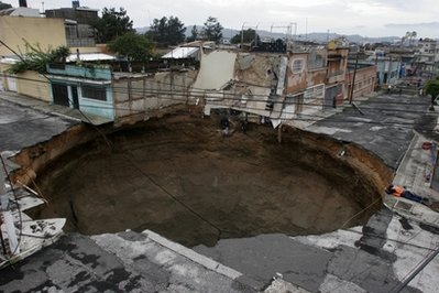 5月31日,熱帶暴風(fēng)雨“阿加莎”在危地馬拉首都危地馬拉城市區(qū)路面造成一個(gè)深60米、直徑30米的巨洞。專家認(rèn)為,填洞并非根本解決之道,如果不改善地下的管線埋設(shè)問(wèn)題,類似巨洞可能將再出現(xiàn)。