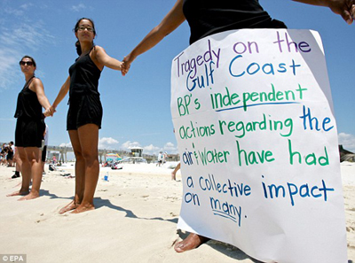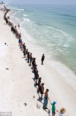 中新網(wǎng)6月27日電 綜合外媒報(bào)道,美國數(shù)百名群眾日前在佛羅里達(dá)州海岸手拉手排成“人鏈”,抗議英國石油公司經(jīng)營的墨西哥灣油井泄漏事件。