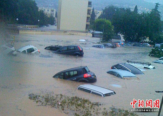 在受災最重的德拉吉尼昂鎮(zhèn),短短數(shù)小時雨量高達300毫米,河川水位暴漲2.4米,居民爬到住宅屋頂上躲避,停放路旁的汽車全被洪水沖走,居民形容水災造成的混亂有如“末日”。