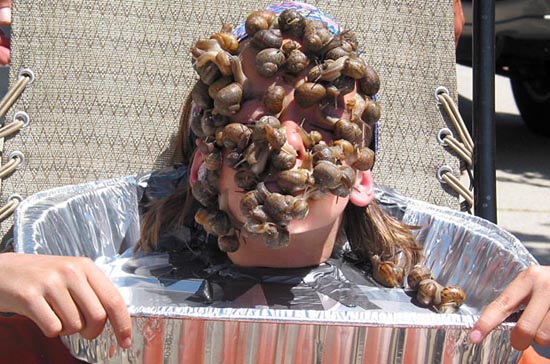 但這都無所謂,因?yàn)榉页晒Φ淖?3只濕滑滑的蝸牛在他的臉上停留的時(shí)間超過了10秒。