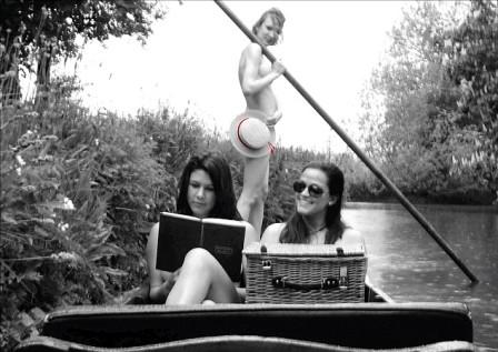 在7月號(hào)的掛歷上,是3名女學(xué)生早晨在法國(guó)中部的謝爾河里一絲不掛地劃船。