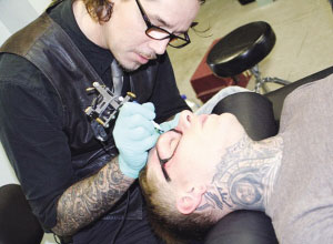 據(jù)悉,馬修除了面部外,幾乎全身上下都文滿了各種五花八門的文身圖案,馬修甚至連脖子上都文滿了圖案,使他看起來就好像穿了一件高領(lǐng)內(nèi)衣一樣。而這段“文眼鏡”視頻顯示,一名文身藝術(shù)家竟用電動文身針在馬修的眼睛部位文了一副和真眼鏡大小一模一樣的黑框眼鏡,令馬修看起來就像真的戴了一副“黑框眼鏡”一樣!