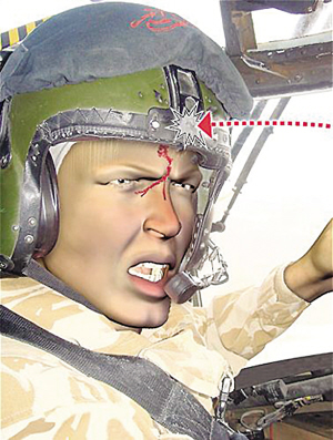 當(dāng)時(shí)塔利班分子的攻勢(shì)很激烈,直升機(jī)盤旋良久才逮到一個(gè)交火較少的機(jī)會(huì)降落下來(lái),不過(guò)當(dāng)傷員陸續(xù)登上直升機(jī)時(shí),對(duì)手的襲擊又開始活躍起來(lái)。當(dāng)傷員接載完畢,伊恩冒著彈雨再起飛時(shí),一粒子彈剛巧擊中他的頭盔前部一塊用于安裝夜視鏡的金屬架,子彈從這里穿透了頭盔,射中他的眉心。鮮血從伊恩的額頭涌了出來(lái),一直流到他的眼睛。此時(shí)更多的子彈射了進(jìn)來(lái),支奴干的控制臺(tái)被擊中,穩(wěn)定系統(tǒng)無(wú)法工作。但伊恩仍然努力控制直升機(jī),繼續(xù)飛行了大約8分鐘,順利降落基地?哲娤⑷耸空f(shuō),如果子彈射低一毫米,又欠缺這位機(jī)師的駕駛技術(shù),機(jī)上所有人相信無(wú)機(jī)會(huì)生還。