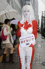 中新網(wǎng)3月25日電 據(jù)日本共同社報(bào)道,美國動物保護(hù)組織“PETA”的一名加拿大籍女性成員24日在東京赤坂的加拿大駐日本大使館前,以全身僅穿內(nèi)衣的方式抗議捕獵海豹獲取毛皮。
