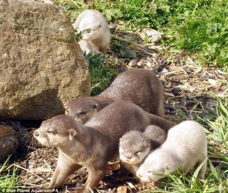 英國柴郡藍色星球水族館3月底誕生兩只水獺寶寶,但是它們的皮毛呈現(xiàn)白色,讓人不禁懷疑它們是否患有白化癥。