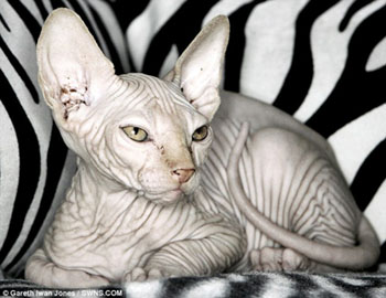 斯芬克斯貓是2005年認(rèn)定的稀有品種,它們無(wú)毛,滿身褶皺。斯芬克斯貓脾氣很好,而且在某些方面它們更像狗,比如,容易與人親近而且對(duì)人忠誠(chéng)。但是這種貓也需要些特殊保護(hù)。比如在夏天,主人需要給它們涂抹防曬霜以免曬傷;在冬天則需要給它們添加衣物來(lái)遮體保暖。斯芬克斯貓通常能活到9—15歲。