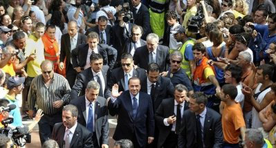 事實上,早在6月2日出席在羅馬舉行的意大利共和國成立日紀念活動時,貝盧斯科尼就遭到了一陣起哄的口哨聲。自那以后,只要是出現(xiàn)在公開場所,貝盧斯科尼總會聽到民眾的起哄。