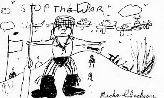 1988年杰克遜在參觀羅馬時(shí)看到一個(gè)小男孩,隨即迅速畫下了他的臉龐。當(dāng)回到下榻酒店他和朋友說:“看他的眼神,和我多像啊”。然后他還在旁邊署上:邁克爾·杰克遜,1988,于意大利。