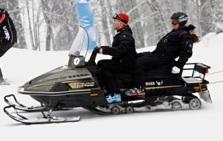 梅普二人在滑雪場(chǎng)乘坐了雪地汽車,梅德韋杰夫還親自駕駛滑雪車,為普京當(dāng)“司機(jī)”。其后,二人到附近的咖啡館休息、喝茶。