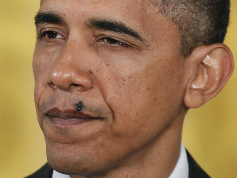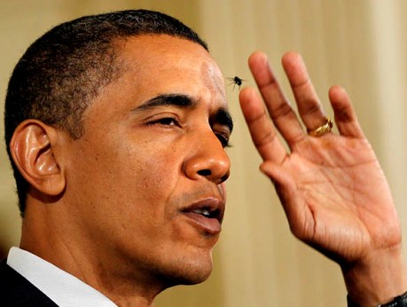 報(bào)道稱,22日,奧巴馬在白宮東廳就醫(yī)改問題發(fā)表演講。演講中,一只惱人的蒼蠅不停的在奧巴馬臉旁徘徊,它甚至一度還停在總統(tǒng)的上嘴唇“歇腳”。平日里指點(diǎn)江山的總統(tǒng)面對(duì)這一狀況也顧不上保持形象,數(shù)度中斷演講用手驅(qū)趕縈繞耳邊的蒼蠅。