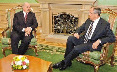 中新網(wǎng)6月23日電 據(jù)香港《文匯報》報道,俄羅斯和白俄羅斯的天然氣沖突升級。俄羅斯國營天然氣公司(俄氣)主席米勒22日宣布,鑒于白俄無意償還拖欠的天然氣債務,立刻減少對白俄30%天然氣供應。白俄總統(tǒng)盧卡申科(圖左)不甘示弱,下令關閉通往歐洲的天然氣管道,并與俄國外長拉夫羅夫(圖右)會面時稱,事件已變成“天然氣戰(zhàn)爭”。
