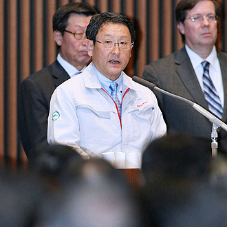 身著一身灰色夾克式工作服的豐田章男在公司總部向2000多名在場(chǎng)的員工鼓勁稱(chēng):“讓我們抖擻精神,以謙卑的態(tài)度和十足的信心迎接未來(lái)的挑戰(zhàn)”。他說(shuō),從今天起,豐田公司將“從頭再來(lái)”。