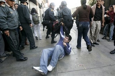 中新網(wǎng)6月12日電 據(jù)美聯(lián)社等媒體報(bào)道,秘魯約2萬民眾當(dāng)?shù)貢r(shí)間11日在國會(huì)大廈前游行,警方施放催淚瓦斯將民眾驅(qū)散。