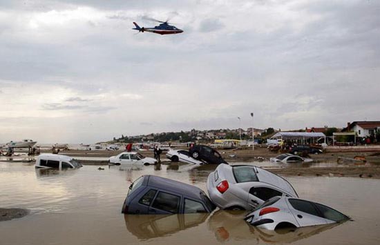 目前,伊斯坦布爾市有些地區(qū)的積水深達(dá)1米,而道路上有些坑洼地區(qū)的積水更深達(dá)2米,兩條分別連接伊斯坦布爾與希臘和保加利亞邊境的交通要道被暫時封閉,交通受到阻礙。