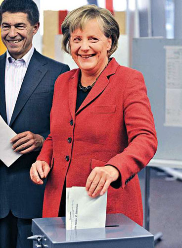 默克爾領(lǐng)軍的基民黨/基社黨(CDU/CSU),隸屬中間偏右的保守陣營(yíng),與主張自由競(jìng)爭(zhēng)市場(chǎng)經(jīng)濟(jì)體制和減稅的右派自民黨政見(jiàn)相近,兩黨組成聯(lián)合政府,德國(guó)的政治生態(tài)從此向右轉(zhuǎn),對(duì)投資環(huán)境和工商團(tuán)體有利,外交部長(zhǎng)一職,很可能由自民黨的黨魁威斯特威勒(Guido Westerwelle)出任。