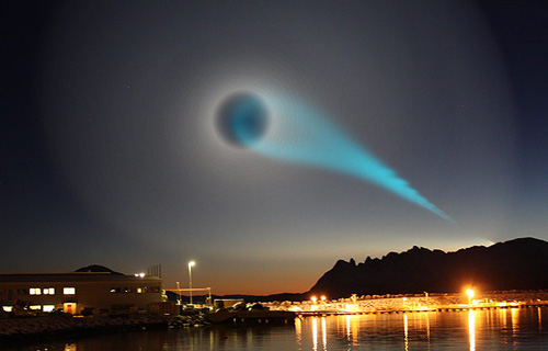 中新網(wǎng)12月11日電 美國總統(tǒng)奧巴馬赴挪威領(lǐng)取諾貝爾和平獎前夕,挪威9日早晨出現(xiàn)神秘異象,一圈圈龐大的螺旋形光束籠罩整個天空,中心拖著一條藍(lán)尾巴,歷時10多分鐘才消散,數(shù)以千計(jì)的挪威人目擊事件,爭相致電氣象研究所查詢,全球頂尖科學(xué)家和軍事專家也嘖嘖稱奇,有指是俄羅斯導(dǎo)彈發(fā)射失敗,有指是北極光或外星人飛碟(UFO)。俄羅斯國防部發(fā)言人承認(rèn),前天早上試射“圖錘”(又稱布拉瓦)彈道導(dǎo)彈失敗。