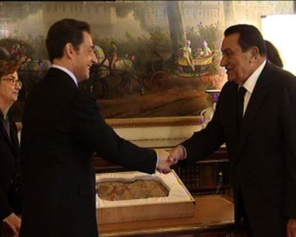 據(jù)報道,14日,薩科齊在巴黎會見了前來訪問的穆巴拉克,雙方在總統(tǒng)府愛麗舍宮享用正式午餐后, 薩科齊交還給穆巴拉克一件埃及文物——法老時期裝飾石碑的殘件之一。