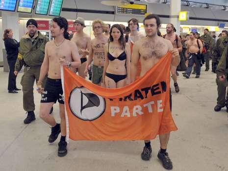 據(jù)德國《圖片報》1月10日報道,當(dāng)?shù)貢r間周日下午,德國“海盜黨”(一個宣傳保護個人隱私的小黨派)的約15名成員在柏林機場A航站樓半裸抗議政府引進更為嚴格的機場身體掃描設(shè)備。