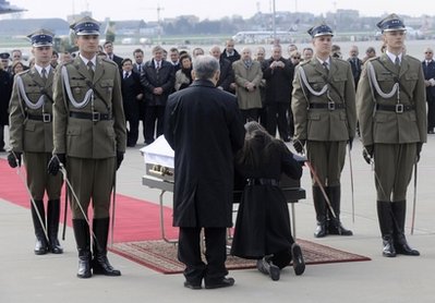 卡欽斯基的靈柩11日由一架波軍直升機(jī)從撞機(jī)地點(diǎn)俄羅斯斯摩棱斯克運(yùn)返波蘭首都華沙,代理總統(tǒng)科莫羅夫斯基、總理圖斯克等官員在場迎接,以一場簡短的宗教儀式向其致祭。靈柩將會由軍隊(duì)護(hù)送到總統(tǒng)府,稍后,當(dāng)局將會把總統(tǒng)府開放,讓民眾進(jìn)入瞻仰卡欽斯基的遺容。