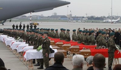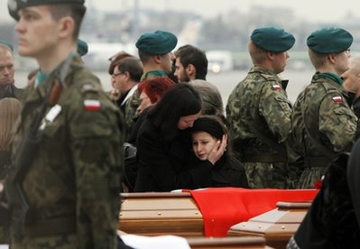 據(jù)報道,14日,載有30名遇難者靈柩的飛機(jī)抵達(dá)波蘭;15日,又有飛機(jī)搭載34名遇難者靈柩飛抵波蘭華沙一間軍用機(jī)場。這些被運(yùn)回故鄉(xiāng)的遇難者當(dāng)中,包括波蘭流亡總統(tǒng)卡丘羅夫斯基的遺體。