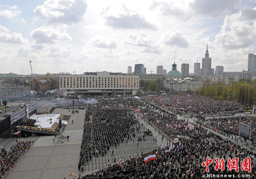 多達(dá)數(shù)十萬(wàn)人聚集在波蘭首都華沙皮蘇特斯基廣場(chǎng),為96名遇難者送上最后的祝福和思念之情,與他們“道別”。