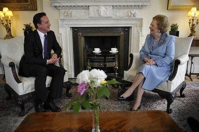 中新網(wǎng)6月9日電 據(jù)外電報(bào)道,在離開(kāi)唐寧街10號(hào)約20年后,英國(guó)前首相撒切爾夫人重回故地,探訪她的晚輩、保守黨新任首相卡梅倫。