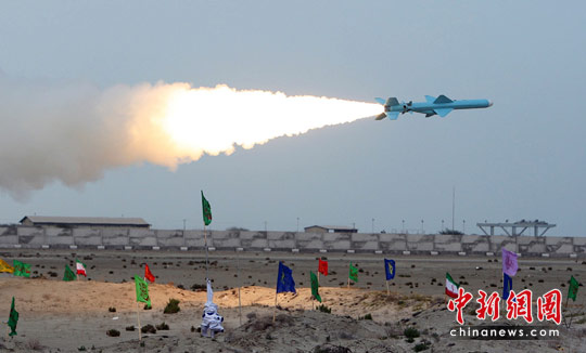 25日,革命衛(wèi)隊(duì)的導(dǎo)彈部隊(duì)從陸上和海上不同地點(diǎn)發(fā)射了2枚艦對艦和3枚岸對艦導(dǎo)彈,這些導(dǎo)彈均同時擊中海上同一目標(biāo)。與此同時,60艘快艇組成6支攻擊編隊(duì),通過發(fā)射107毫米口徑制導(dǎo)火箭彈,也成功使一艘大型戰(zhàn)艦失去戰(zhàn)斗力。伊朗國家電視臺解說道,“在預(yù)定時刻,數(shù)枚反艦導(dǎo)彈如利劍一般率先從陸地發(fā)射車上迸射而出……我方所有雷達(dá)全部開機(jī),雷達(dá)屏幕顯示海面上的快艇也向目標(biāo)艦施放了導(dǎo)彈,在遠(yuǎn)處高地觀戰(zhàn)的戰(zhàn)士們目睹多枚導(dǎo)彈在天空劃出一道道白色弧線,準(zhǔn)確飛向海平面深處的目標(biāo)!